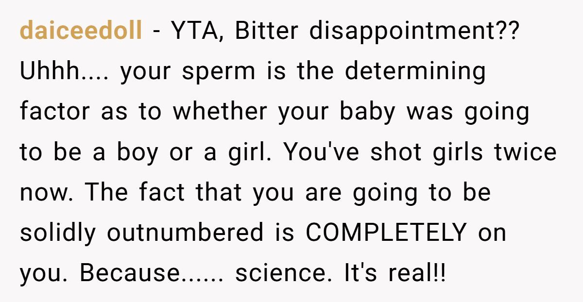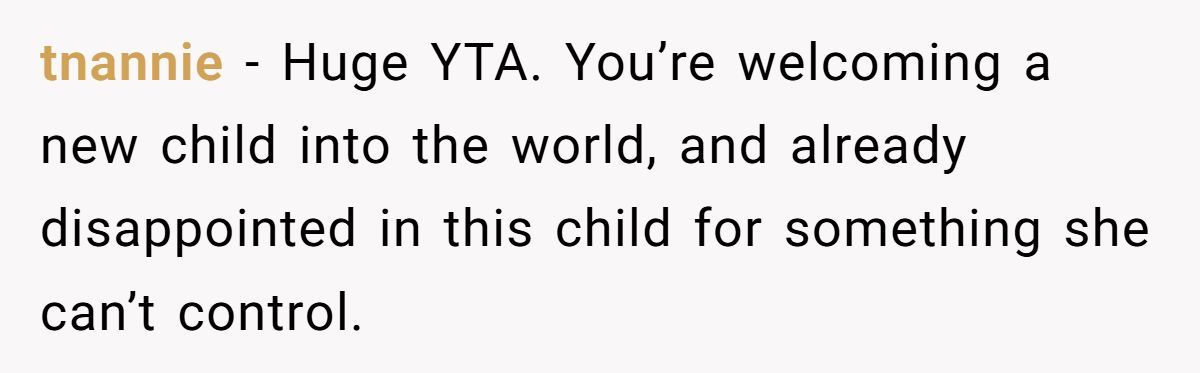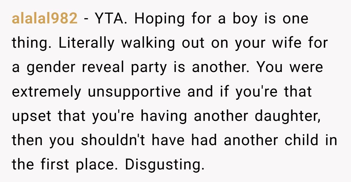 Users acknowledged hoping for a boy is normal but said his reaction was unfair to his unborn daughter
