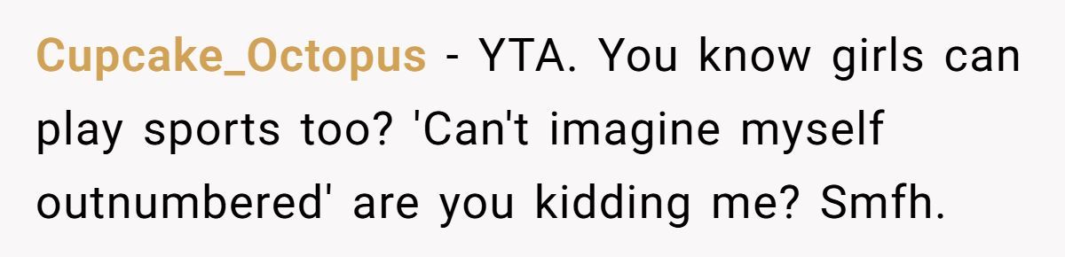 Commenters pointed out he can toss a ball or camp with his daughters, urging him to embrace them instead of feeling “outnumbered.”