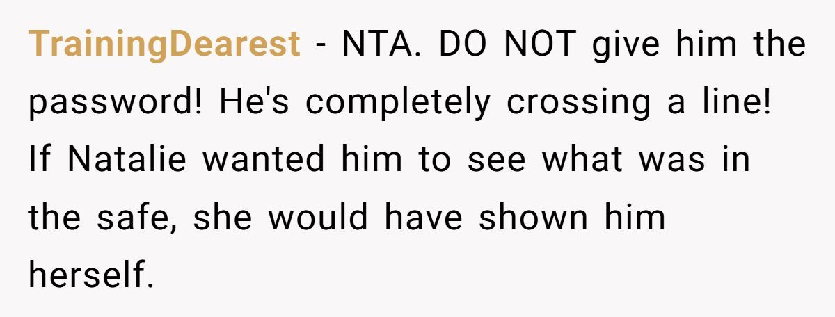 Psychologist Brené Brown emphasizes, “Trust is built through small, consistent acts of integrity”. This resonates—by protecting the safe’s password, the Redditor upheld her sister’s trust, but Micah’s reaction suggests a deeper issue, as commenters noted, possibly hinting at ulterior motives. Her discomfort, compounded by her non-confrontational nature, underscores the challenge of standing firm in a tense situation.