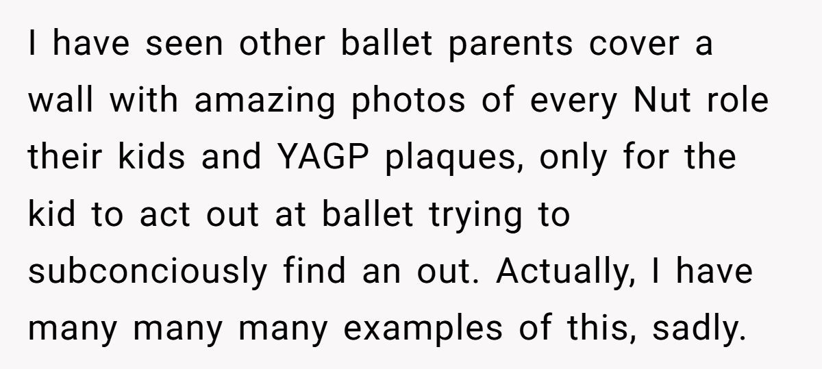 But grandma wasn’t having it. During her visit, she quietly removed the items, hid them, and when asked, said the display was “snobby.” Worse, she ridiculed the son’s interest in ballet, feeding into outdated gender stereotypes. When she refused to return the mementos, the Redditor told her to leave immediately.
