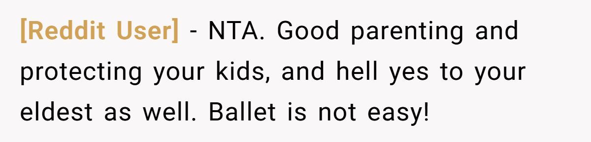 She took it upon herself to hide it, calling it “tacky” and mocking your son’s love of ballet. When confronted, she refused to back down. The result? One fiery showdown, one packed bag, and a storm of Facebook posts dragging you as “ungrateful.” Was this a justified act of parental defense, or a dramatic overstep in family boundaries?