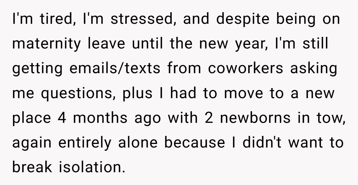 The broader issue is setting boundaries as a new parent under pressure. The Redditor could propose a low-key Christmas visit with clear rules (e.g., no baby disturbances) to maintain family ties without hosting. Her family should step up to support her, perhaps by hosting or helping with the babies. For now, prioritizing her and her kids’ needs is key. How do you balance family expectations with new-parent stress?