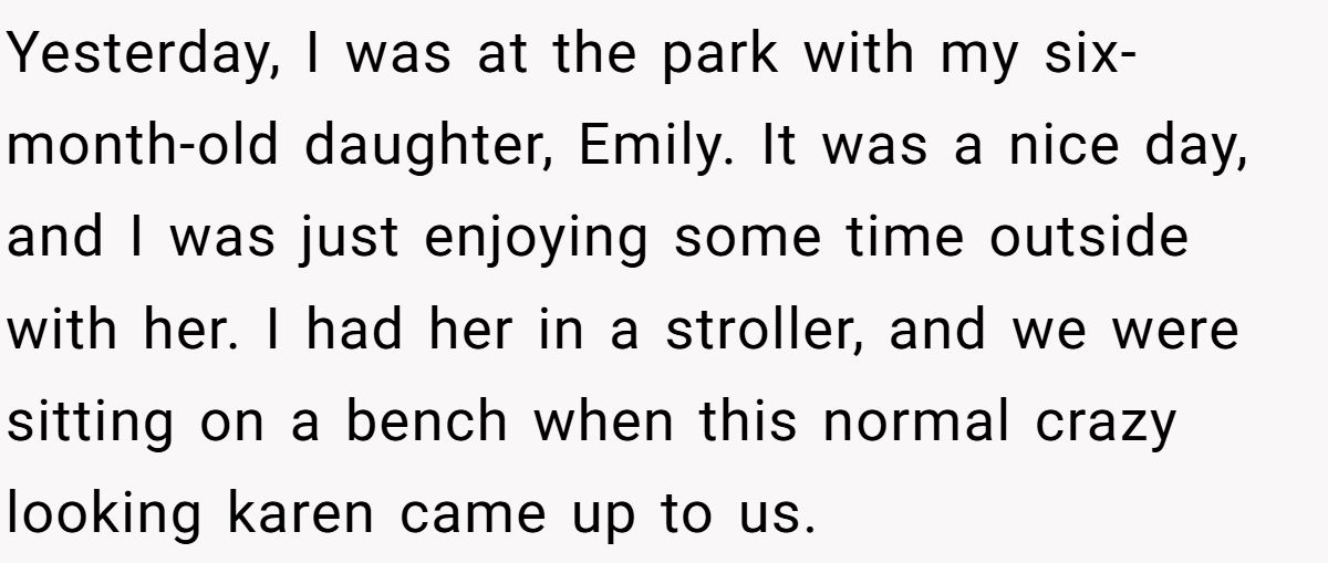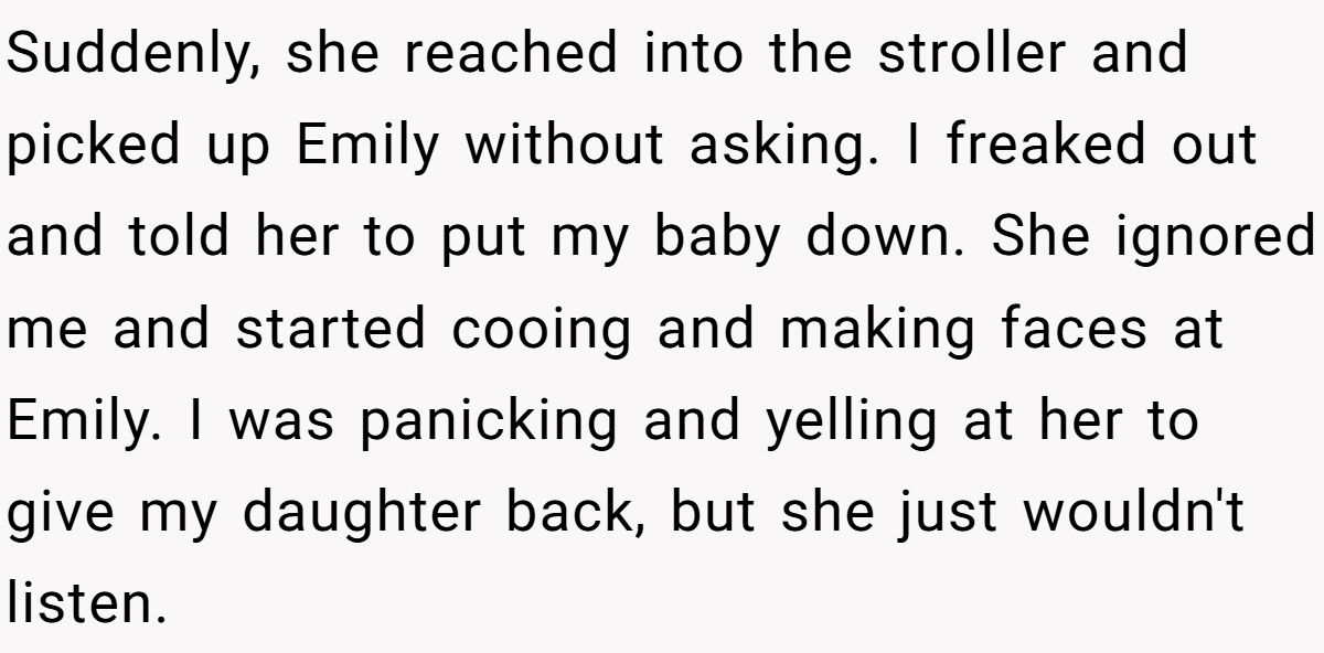 A Redditor walked into a public park thinking she was in for a peaceful afternoon with her baby girl. Instead, she left in a panic, possibly facing legal trouble—all because a stranger decided to pick up her child without permission.