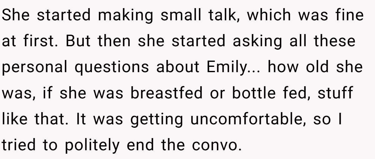 What began as small talk with a curious woman quickly turned into every parent’s nightmare. This mother didn’t just speak up—she took matters into her own hands (literally), and now she’s wondering whether defending her daughter was the right thing to do or a step too far. Want the juicy details of what unfolded when a “Karen” got a little too handsy? The original post below tells it all.