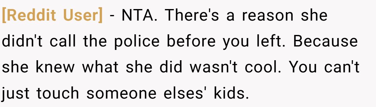Psychologist Dr. Ann-Louise Lockhart says, “Parental instincts in perceived danger prioritize safety over social norms”. This fits—the Redditor’s slap was a visceral response to a real threat. The stranger’s claim of assault doesn’t hold up when she initiated the violation.