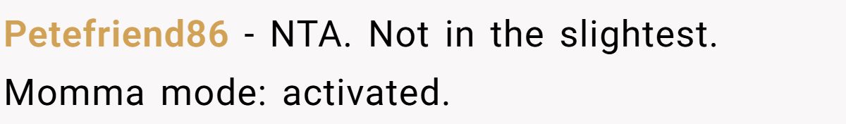 A commenter noted the response was valid regardless of the parent’s gender, emphasizing the universal instinct to protect a child