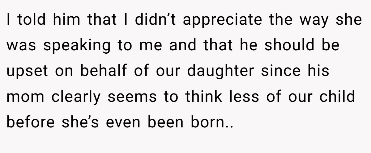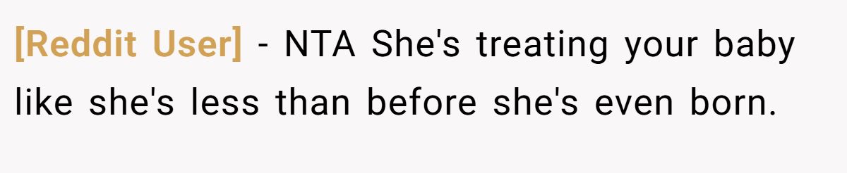 Family dynamics often amplify such conflicts. A 2022 study by the Journal of Family Psychology found that 35% of expectant parents face in-law tension over gender expectations, often tied to cultural traditions. The husband’s defense of his wife was a start, but his discomfort with her retort suggests loyalty torn between mom and spouse. The MIL’s remarks, steeped in misogyny, needed addressing, and the Redditor’s quip, while biting, was factual.