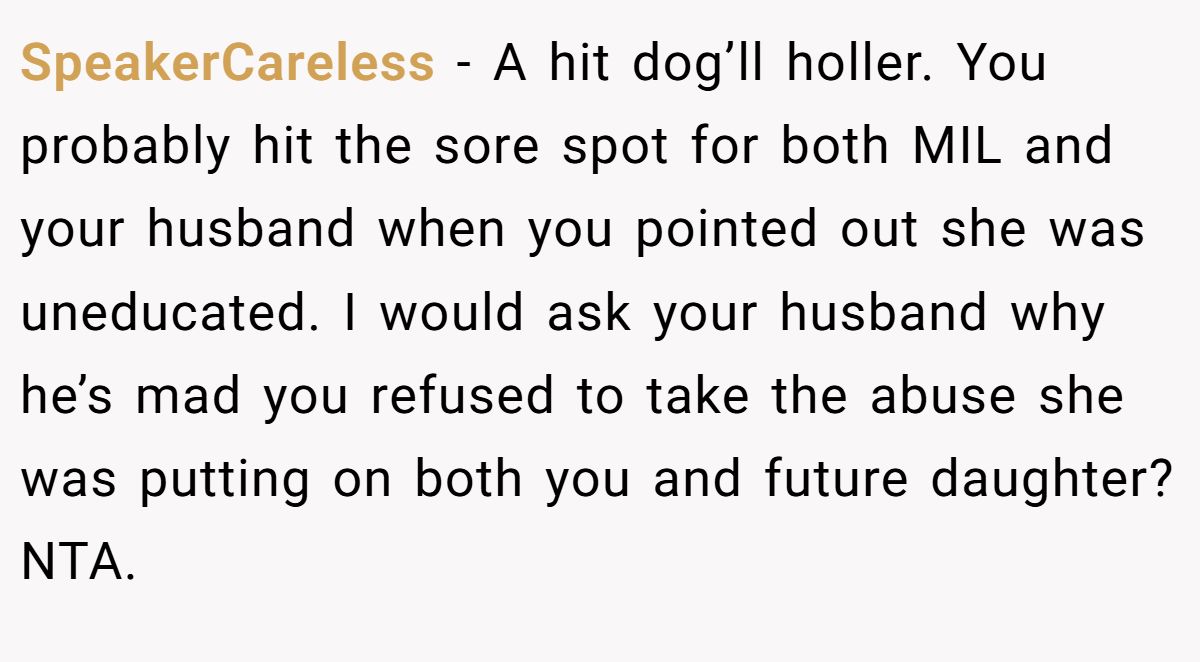 This Redditor’s biology burn at her MIL’s gender-biased jab turned a baby announcement into a family showdown. Her husband’s torn feelings and the MIL’s outdated views left her wondering if her quip went too far.