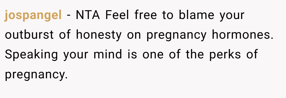 Jospangel excused the redditor’s outburst as pregnancy-driven, supporting her stance.
