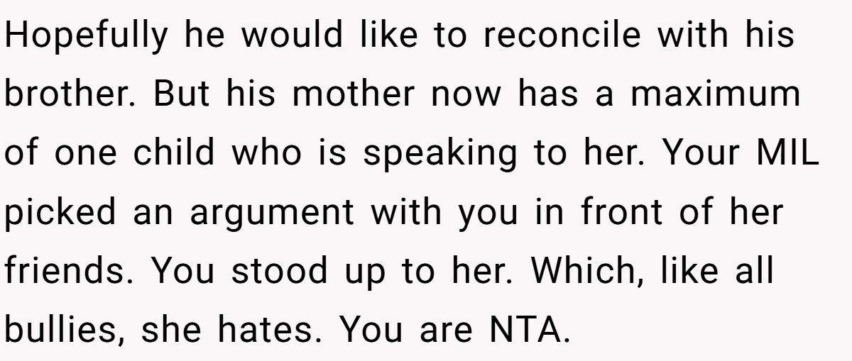 These commenters backed the Redditor’s right to call out MIL’s bullying