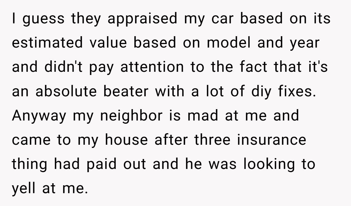 Her landlord’s intervention likely prevented a heated confrontation, but ongoing tension suggests a need for clear parking boundaries. This saga reminds us: even beaters deserve justice. Was her claim a fair play, or did the payout stir too much trouble? What’s your take on this neighborly fender-bender?