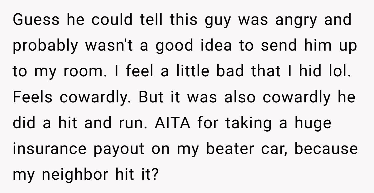 Talk about a car crash that revved up a neighborhood showdown! This Redditor’s decision to file an insurance claim after her neighbor’s hit-and-run wasn’t just about her dented beater—it was about accountability.