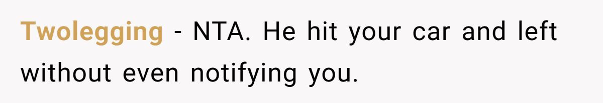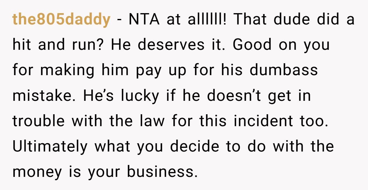 In the comments, almost Reddit users backed OP. Many argued her neighbor’s hit-and-run warranted the claim, regardless of her car’s condition