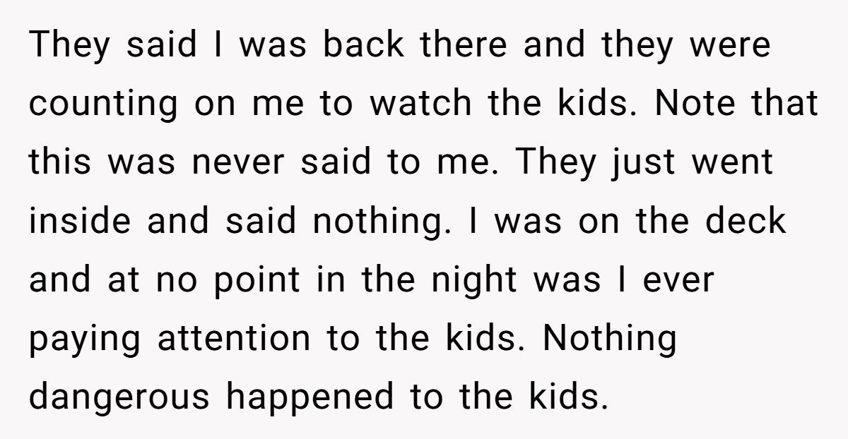 That’s a red flag for any parent to stick close, not ditch their kids with a random deck-dweller. The Redditor’s retort—“even more reason to stay with your kids”—was a zinger, but it hit the nail on the head. He wasn’t tasked with anything, so why the blame?