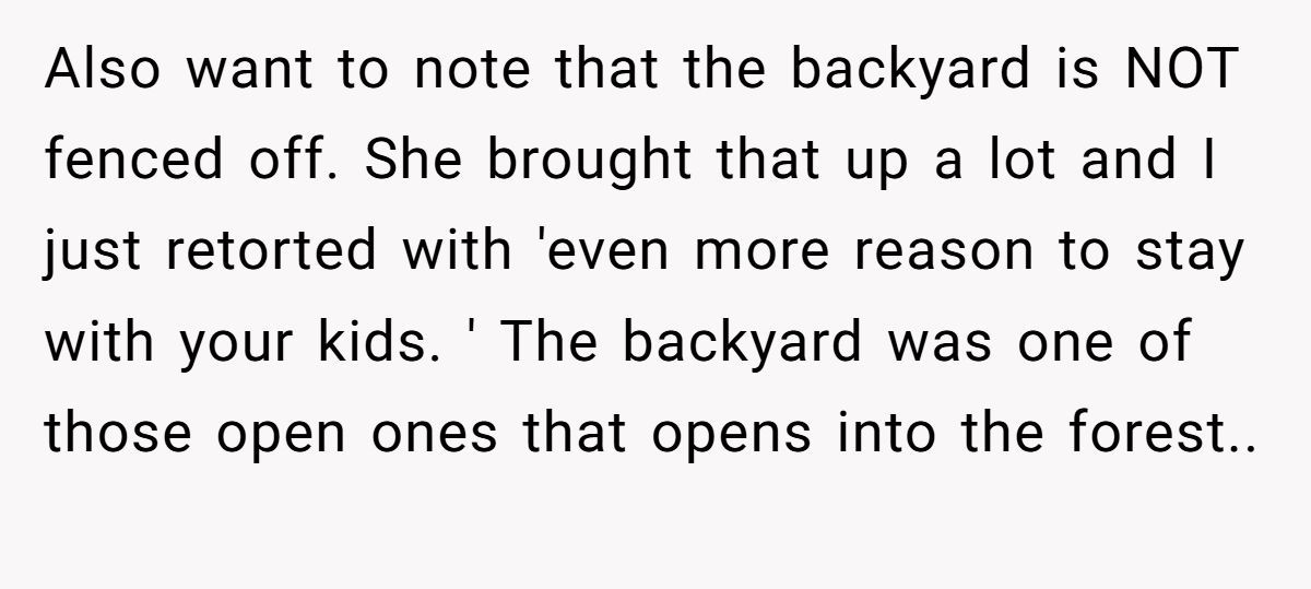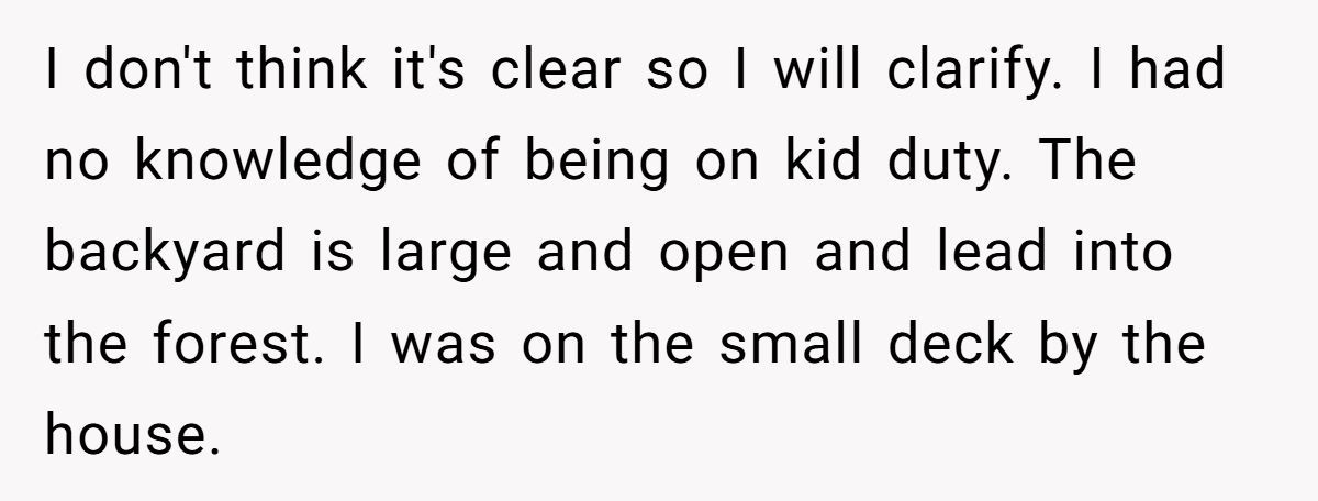 The Redditor’s stance is clear: he’s not a babysitter, and nobody asked him to be one. The parent’s assumption that he’d magically supervise their kids while they mingled indoors screams entitlement. An unfenced yard leading to a forest?