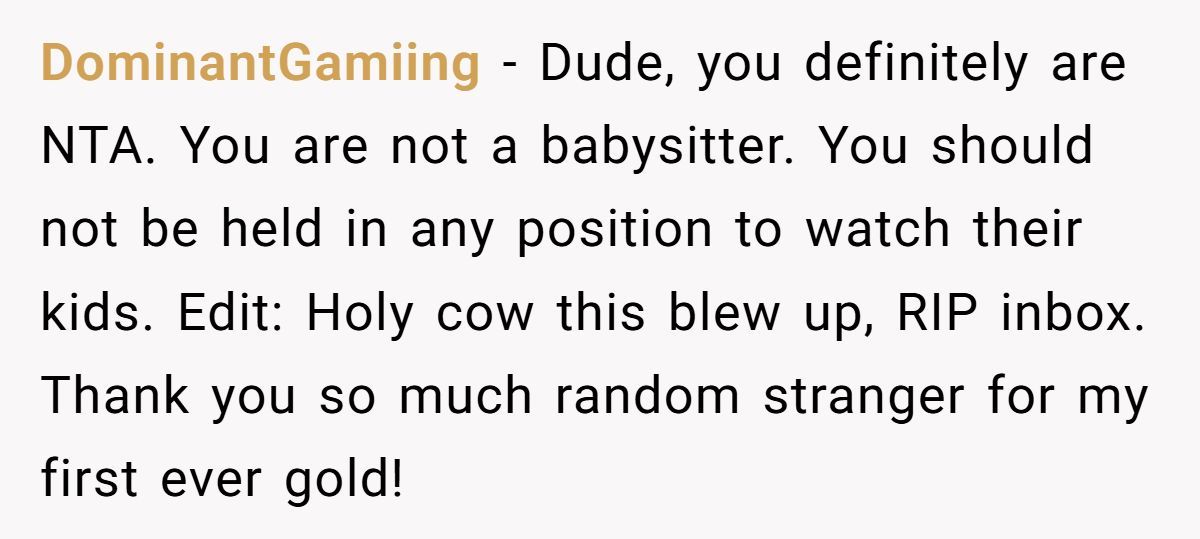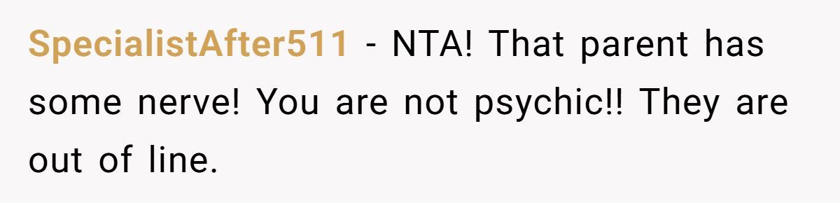 Many redditors were stunned by the parent’s audacity and firmly agreed the Redditor wasn’t to blame.