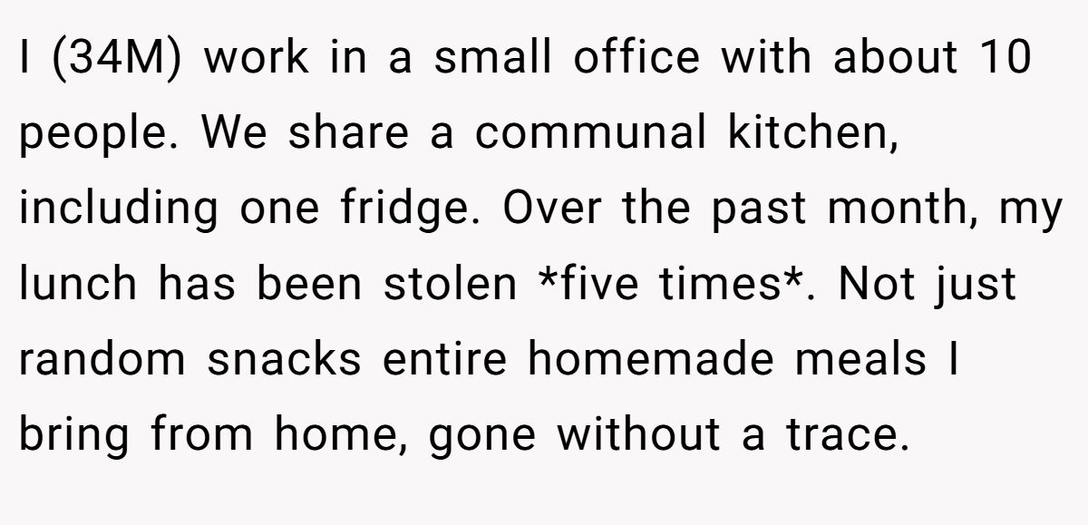 You might laugh about lunch theft… until it keeps happening to you. That’s what happened to one Redditor who posted in the AITA subreddit after his lovingly prepared meals mysteriously vanished five times from the shared office fridge.