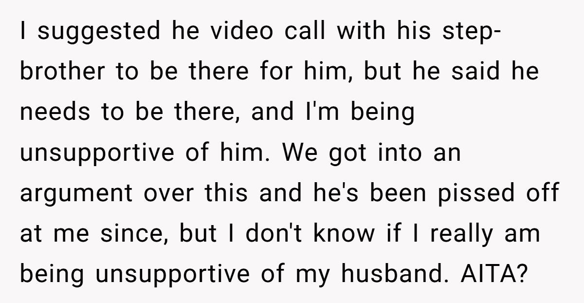 Navigating family grief and impending parenthood is like walking a tightrope blindfolded. In this case, the husband feels pulled to support his grieving stepbrother, while his wife—who could go into labor any day—needs emotional and physical backup.