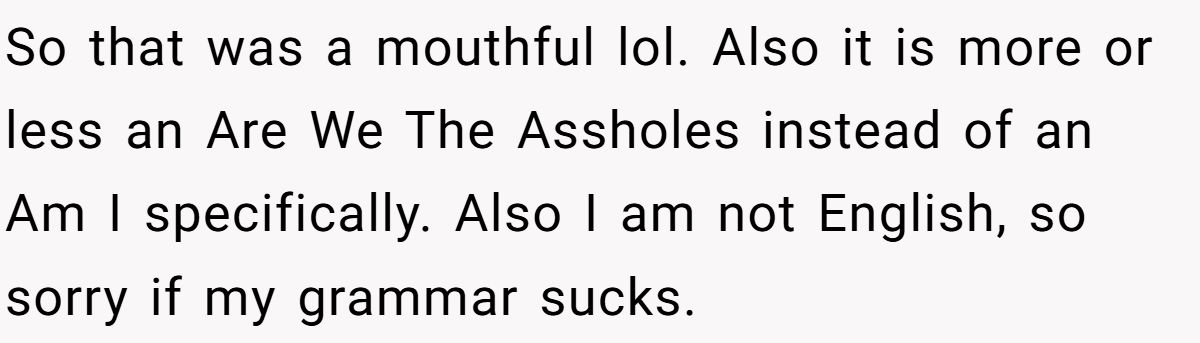 So that was a mouthful lol. Also it is more or less an Are We The Assholes instead of an Am I specifically. Also I am not English, so sorry if my grammar sucks.