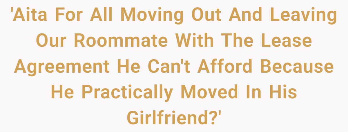 'Aita For All Moving Out And Leaving Our Roommate With The Lease Agreement He Can't Afford Because He Practically Moved In His Girlfriend?'