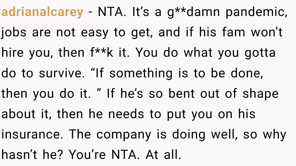 Others also agreed OP was NTA. They said if the husband’s family wouldn’t hire OP, she had every right to work for a competitor and look out for herself.