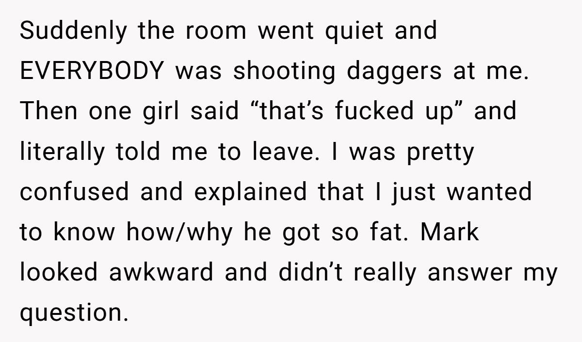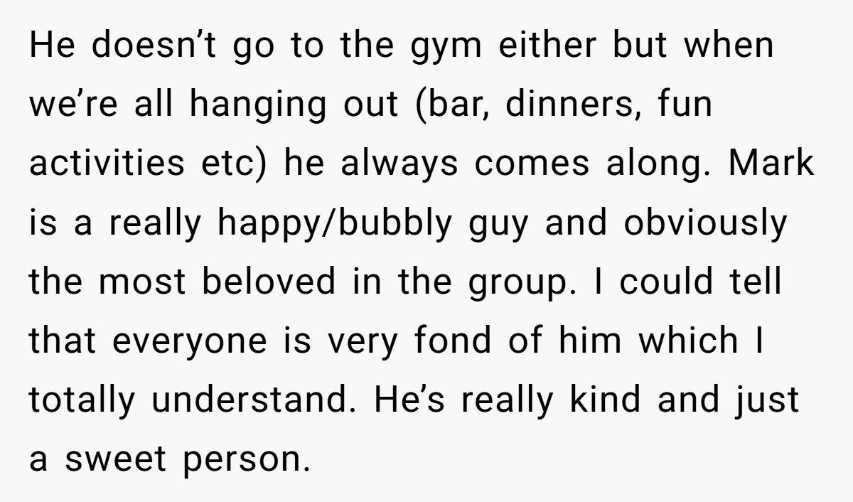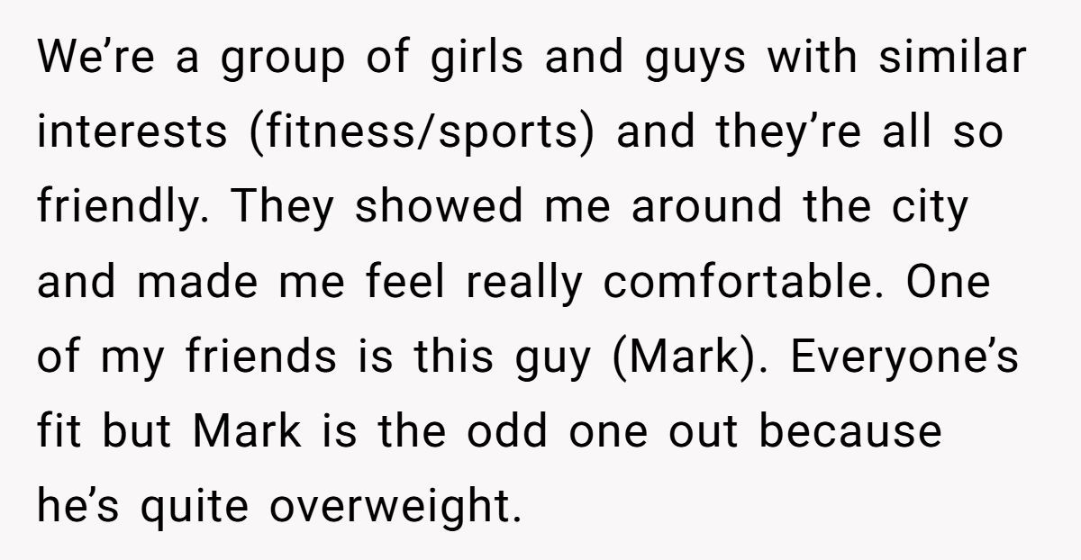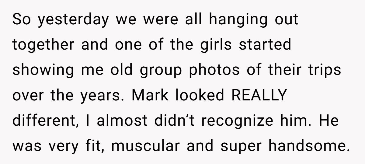 This Redditor had no idea a single question could unravel a budding friendship so fast. She had recently joined a tight-knit group of fitness enthusiasts, and everything seemed to click—until she saw old photos of Mark. In those pictures, he looked completely different. Fit, lean, glowing with that “gym life” energy. So she blurted it out: “What happened? Why did you get so fat?”