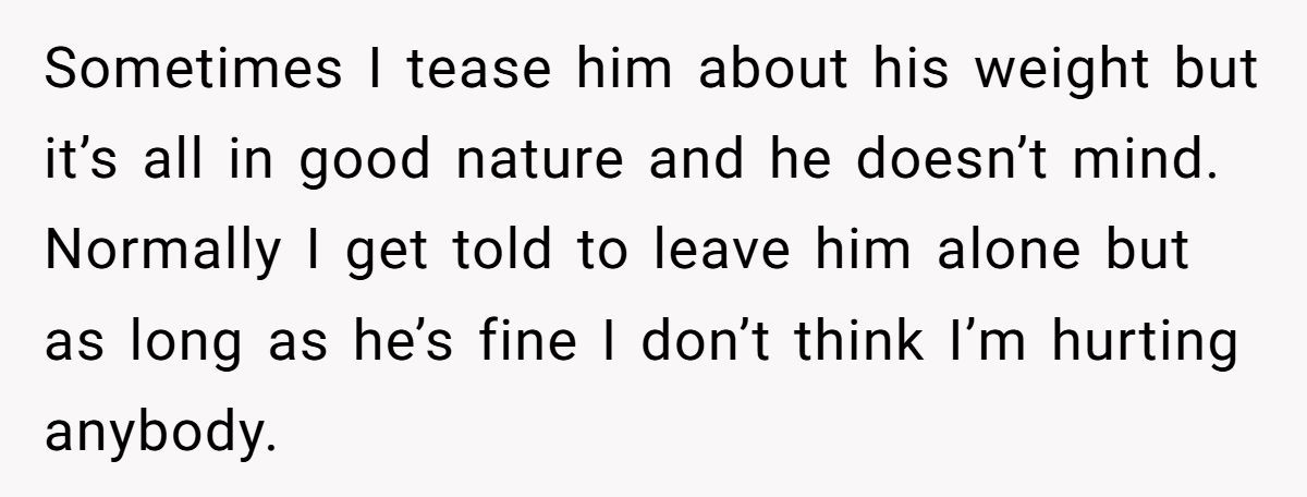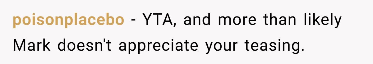 Redditors agree: YTA. Mark doesn’t owe you an explanation about his weight, and your constant teasing, especially after being told to stop is disrespectful and unkind.