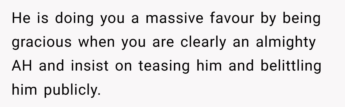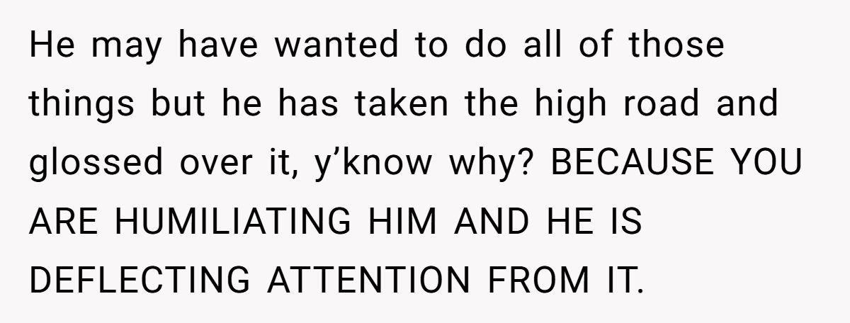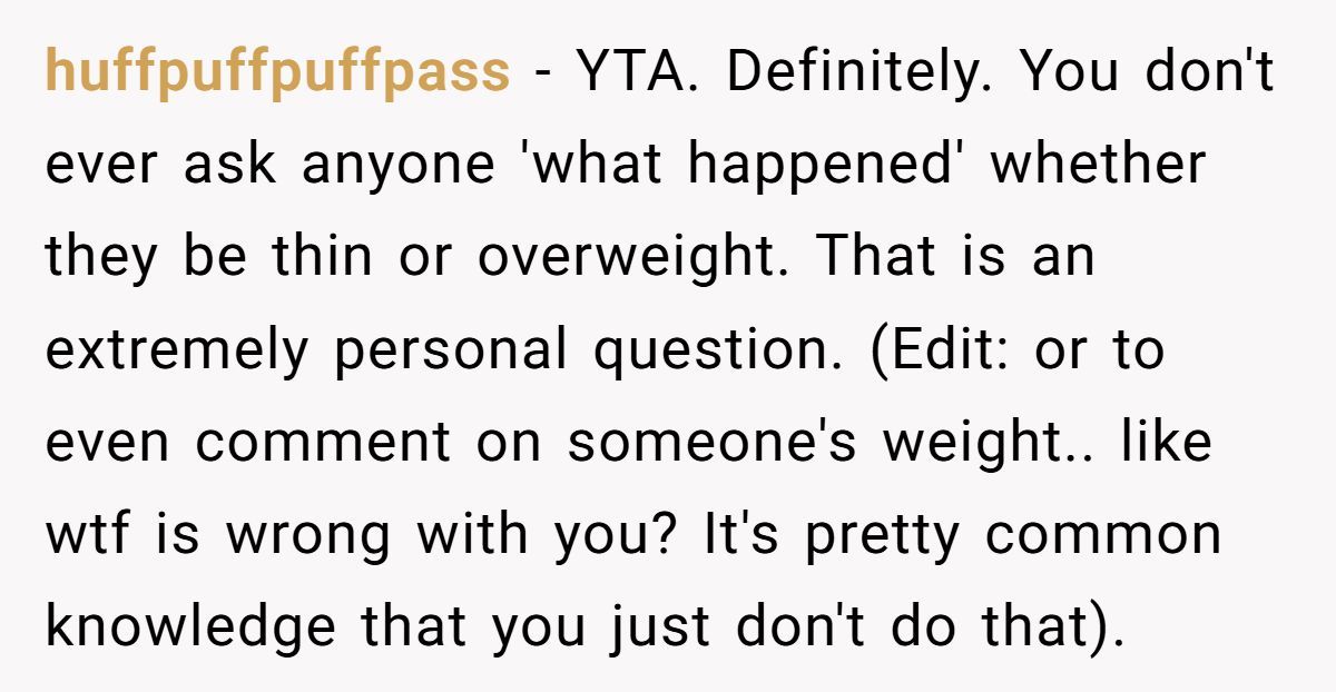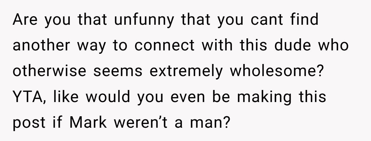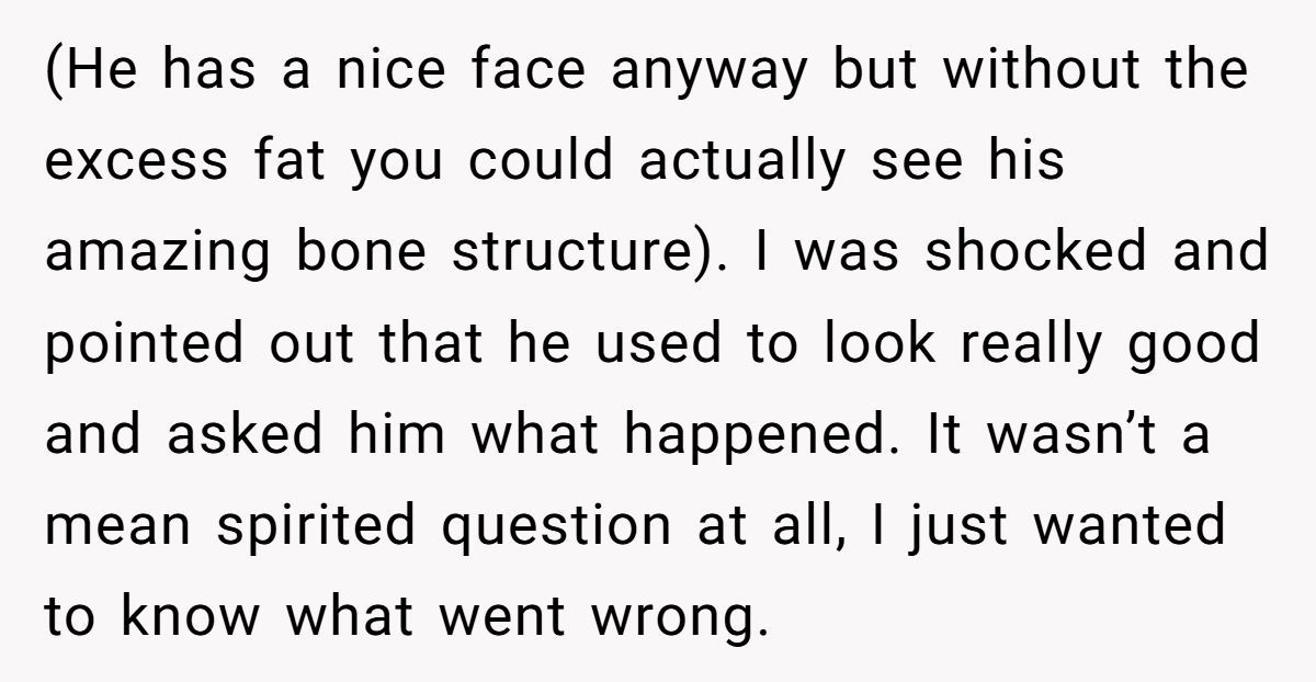 This Redditor thought her jabs were playful, but they struck a nerve. The “what happened” question didn’t just highlight a change—it implied that Mark was somehow worse off now. In a space where everyone else fit a certain mold, that comment cut deep.