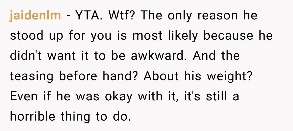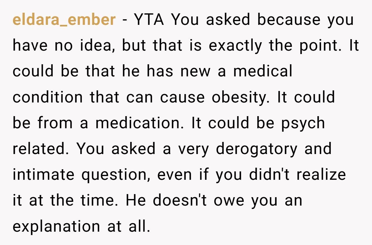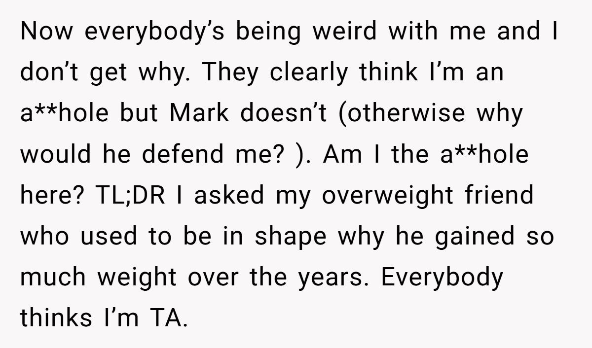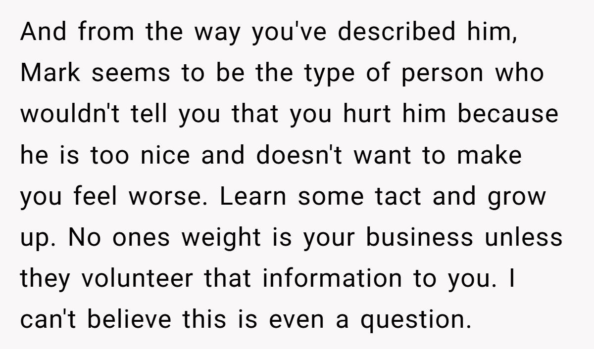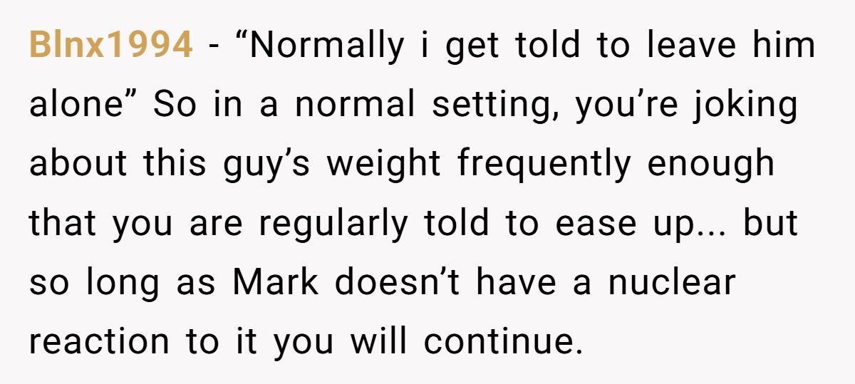 Redditors say he’s the AH, commenting on weight like that is rude, and Mark’s silence doesn’t make it okay.
