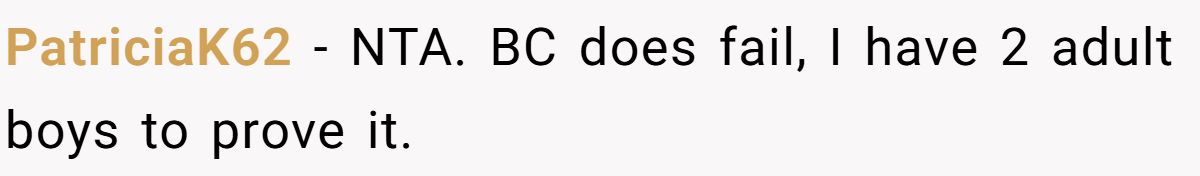 PatriciaK62 − NTA. BC does fail, I have 2 adult boys to prove it.