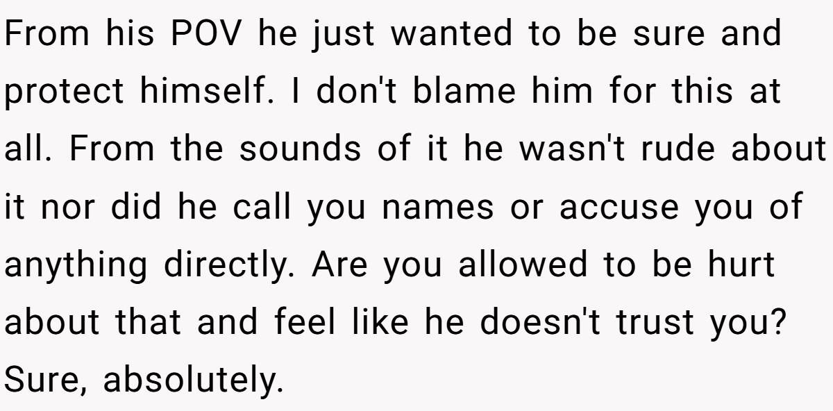 Other Redditors were split, some thought no one was truly at fault, while others firmly backed her decision to walk away from a partner who didn’t trust her:
