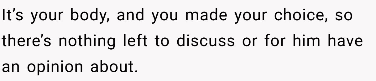 It’s your body, and you made your choice, so there’s nothing left to discuss or for him have an opinion about.