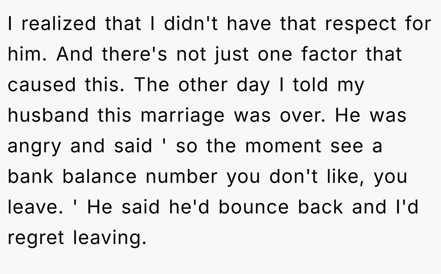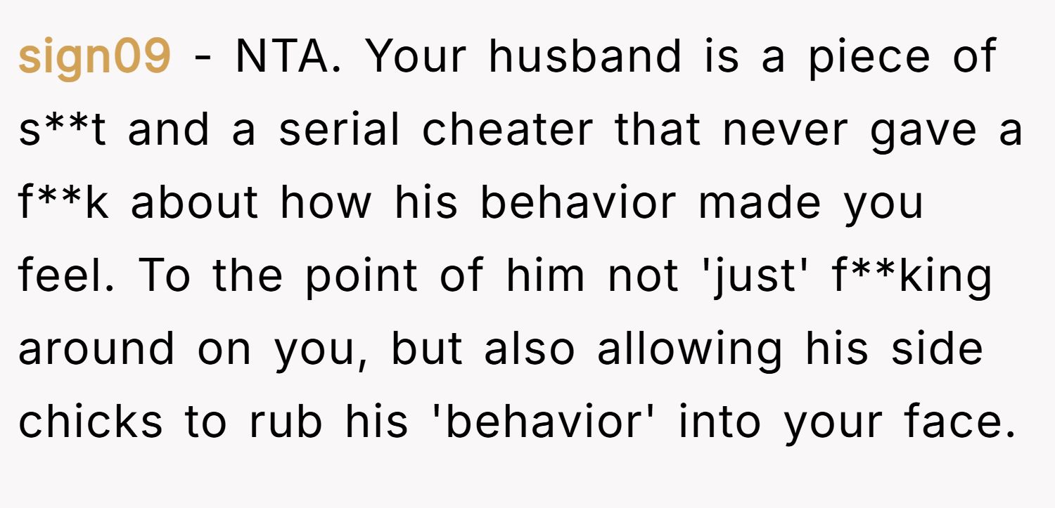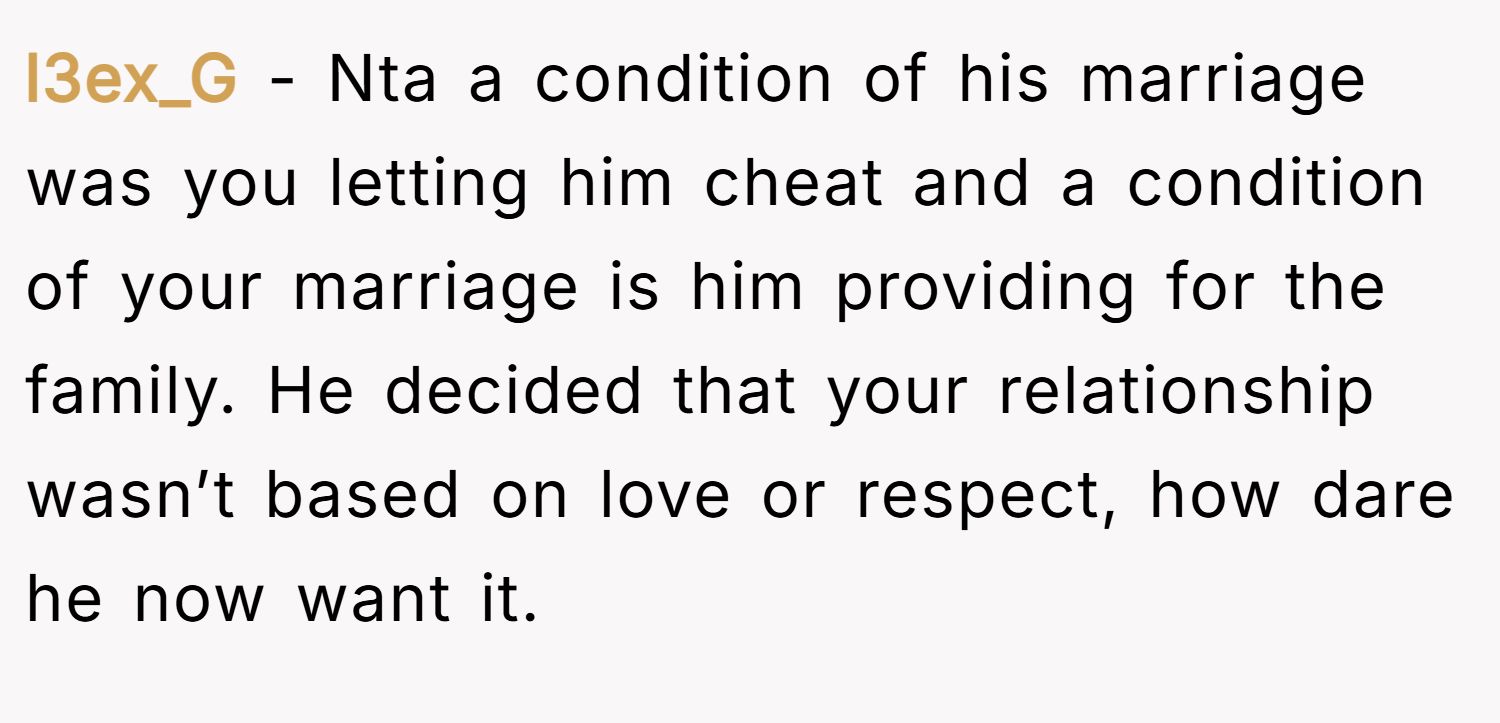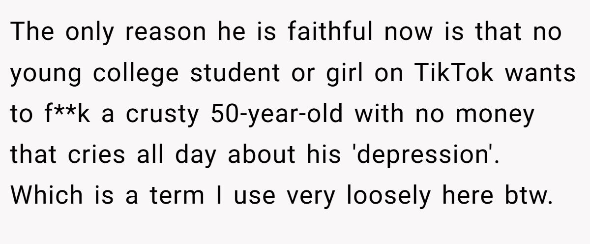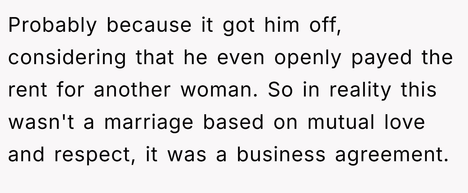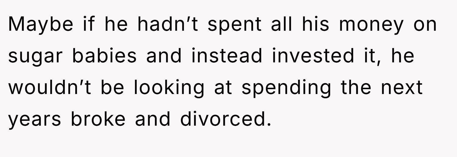 One commenter said it best — his cheating didn’t ruin the marriage all at once, it wore it down piece by piece. And when the money disappeared, so did the last reason to stay.