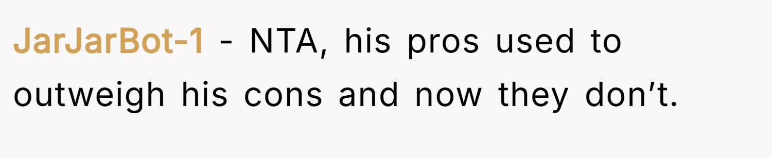 JarJarBot-1 kept it simple — when the pros disappear and all you’re left with are cons, it’s time to go. And really, that’s the most honest kind of math there is.