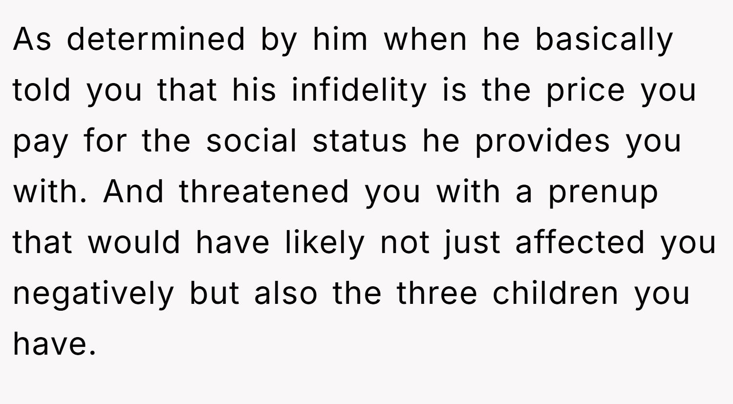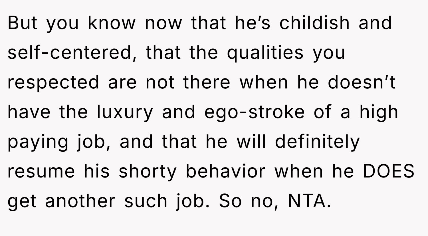 Ok-Reporter-196 nailed a brutal truth — this wasn’t a love story anymore, it was a business deal, and he set the terms. He wanted loyalty without giving any, and now that he’s broke and suddenly “faithful,” it’s a little too convenient. Honestly, I respect the clarity in this take. When the foundation crumbles, you don’t owe anyone the ruins.