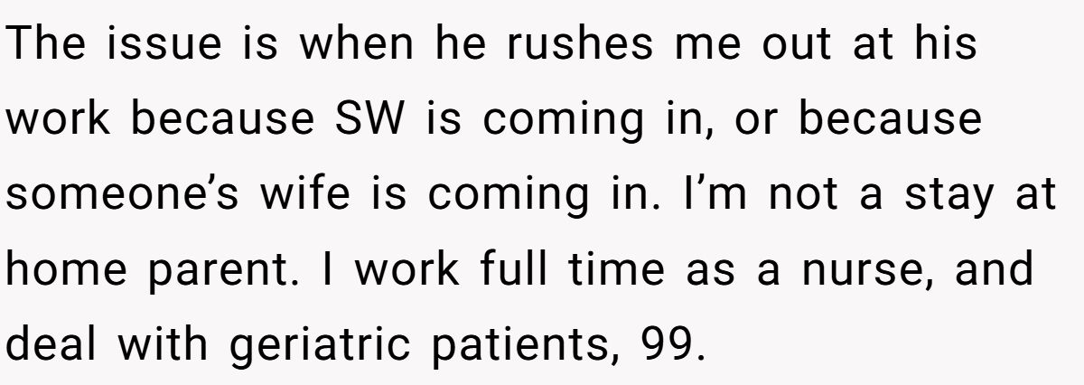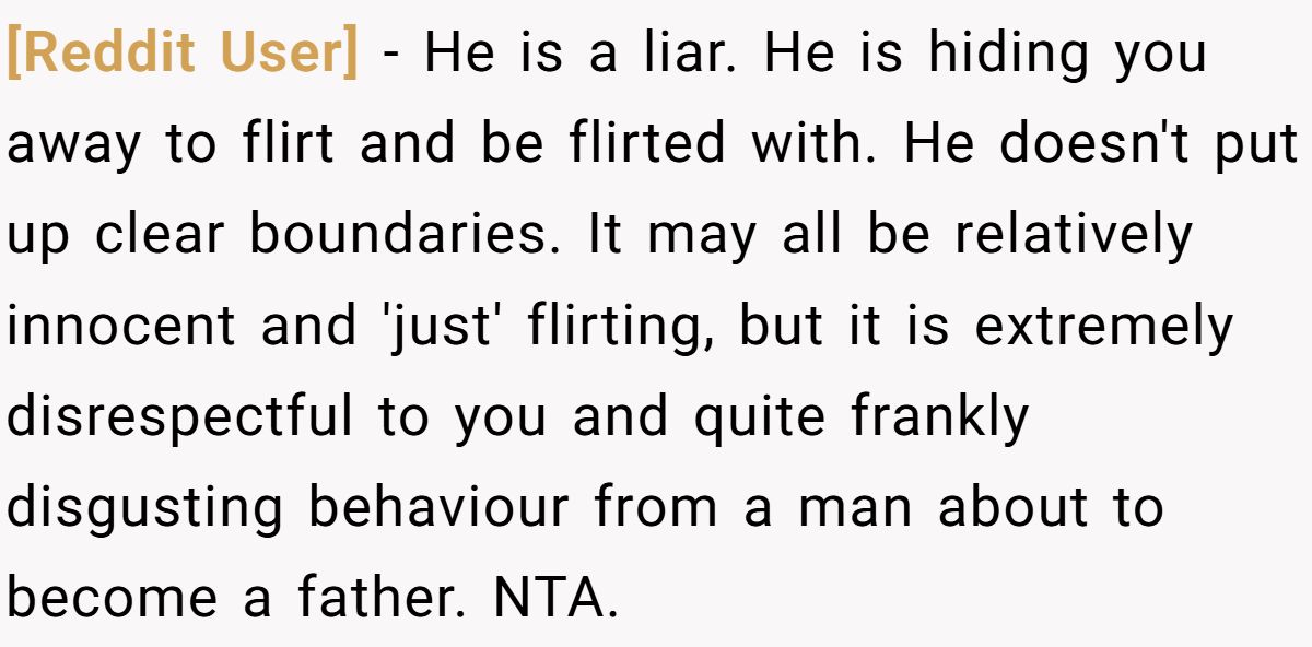 His behavior isn’t just disappointing, it’s dismissive. From his point of view, these interactions may feel harmless or routine, but refusing to draw clear lines blurs the emotional space between harmless banter and emotional infidelity. Even more troubling is how he rushes his pregnant wife out of the room whenever certain women visit. It’s not about jealousy. It’s about being made to feel like an afterthought in her own relationship.