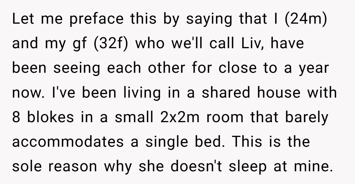For months, he’d been stuck living with eight other guys, eight. Privacy? None. Clean kitchens? A distant dream. So when his girlfriend Liv welcomed him into her quieter, cleaner flat a few nights a week, it felt like finally coming up for air.