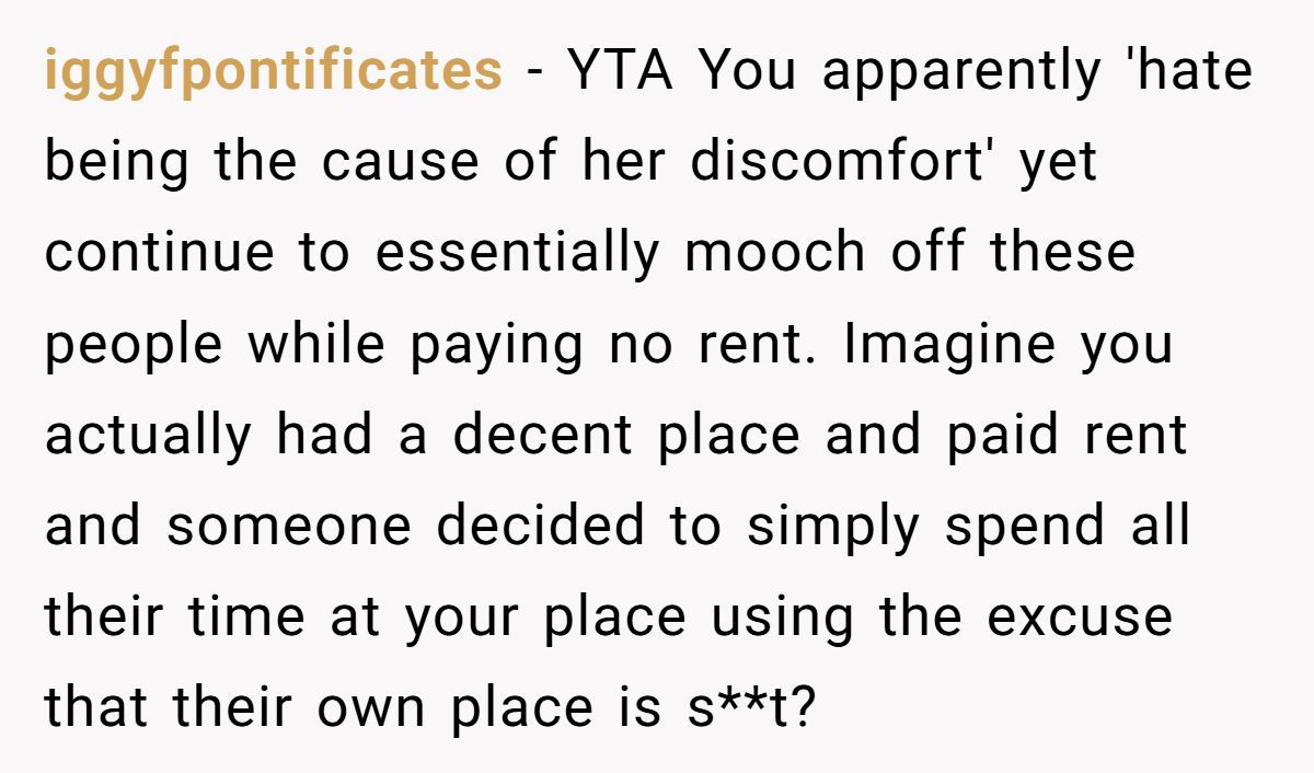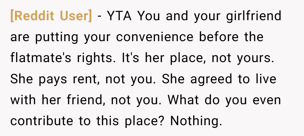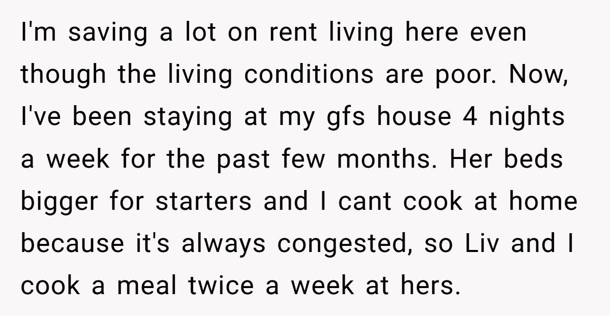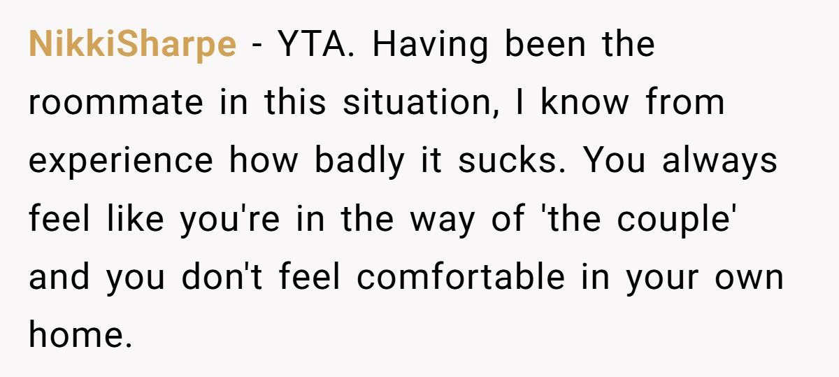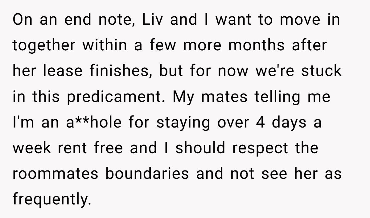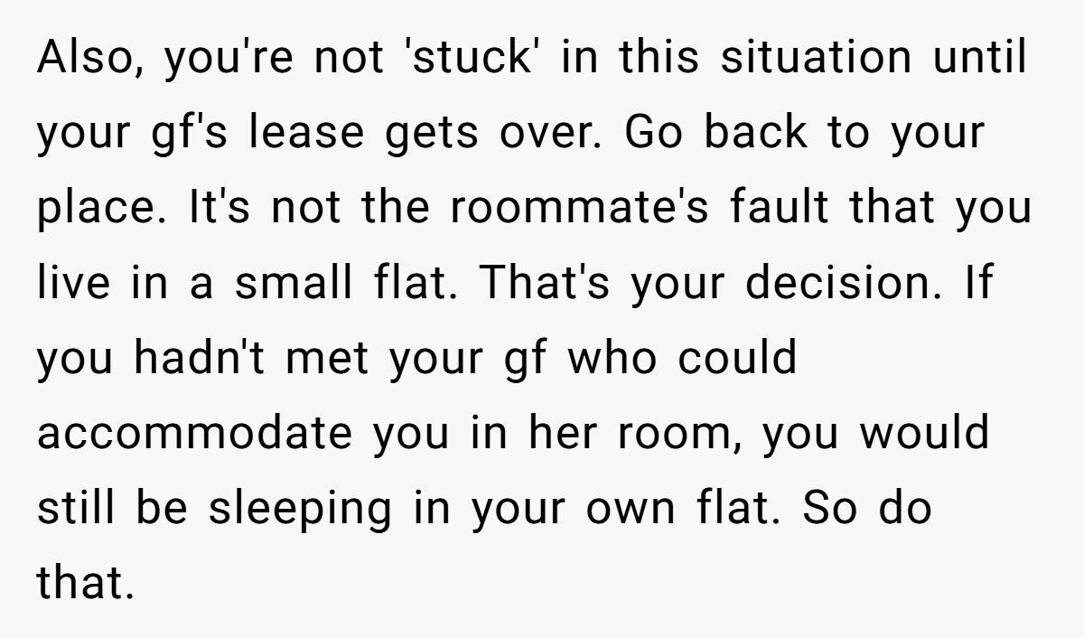 Most commenters agreed: the boyfriend wasn’t just visiting anymore, he had become an unofficial third roommate who didn’t pay rent, and Bianca never signed up for that.