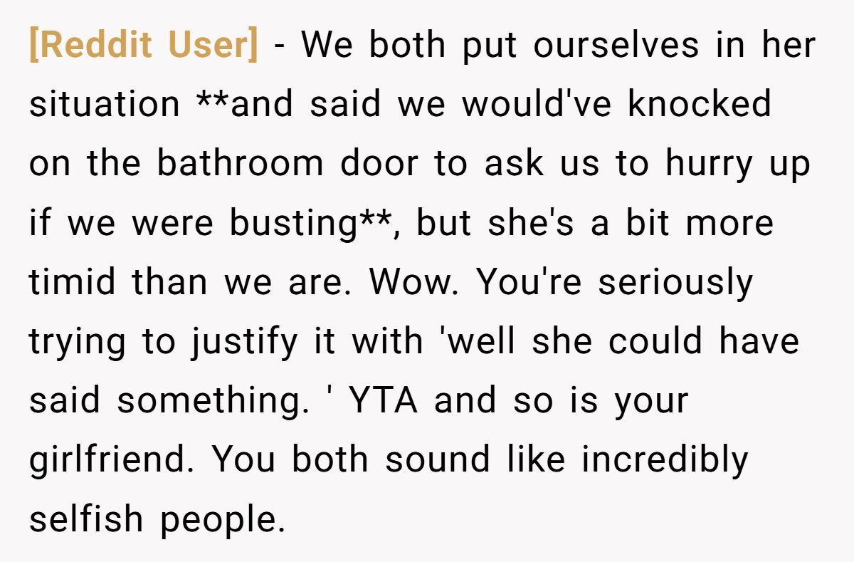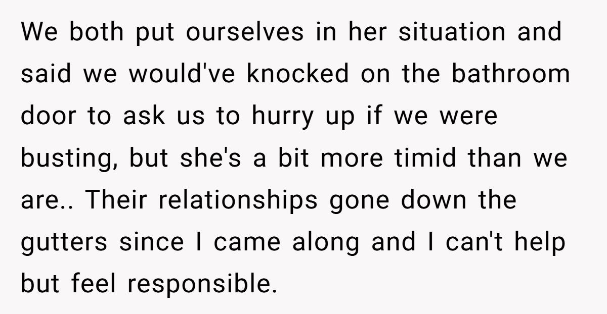 And while the Redditor’s idea of knocking might sound reasonable, it assumes Bianca had the confidence to speak up, which not everyone does in tense roommate setups. In fact, his presence became a silent negotiation she was never invited to join.