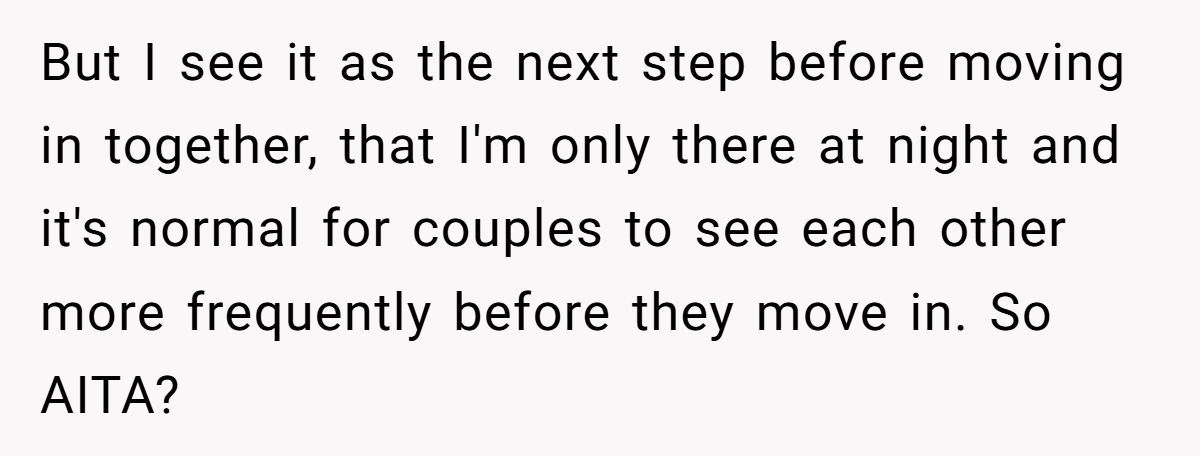 Now he’s wondering: is he just easing into the next stage of their relationship—or slowly turning into an uninvited tenant?