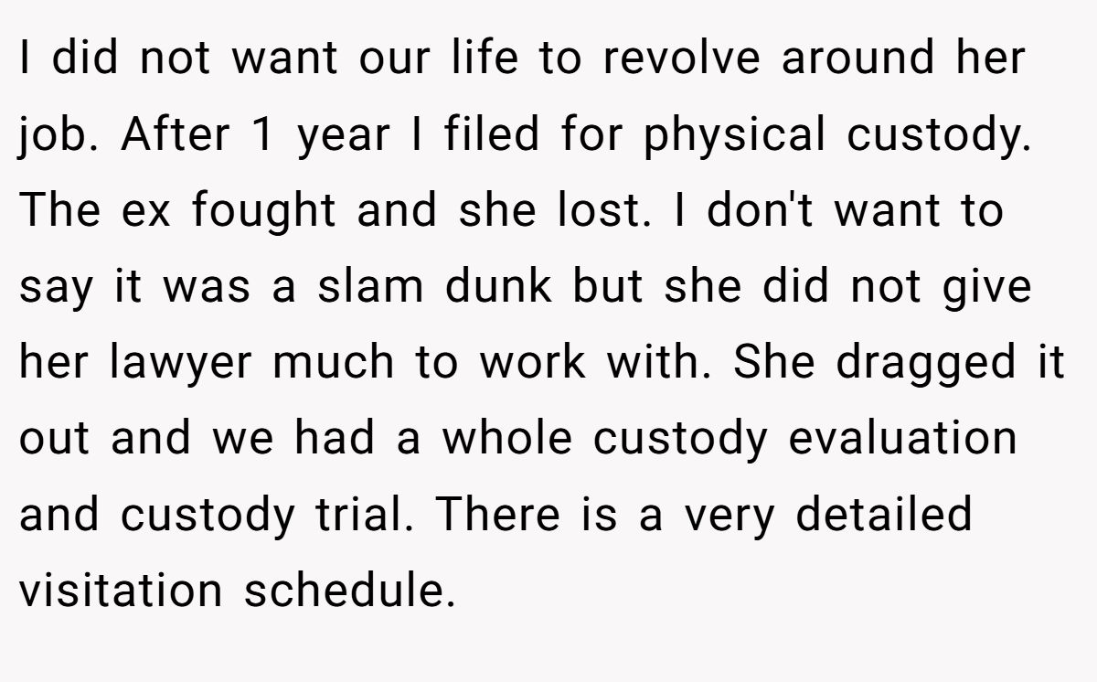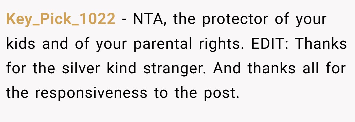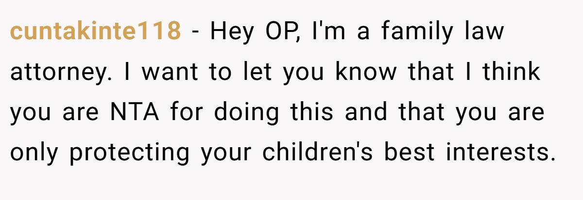Key_Pick_1022 praised the dad for standing his ground, calling him “the protector of your kids and of your parental rights.” In high-conflict custody situations, it’s not about keeping score, it’s about keeping promises. And for this Redditor, protecting his children meant holding everyone, including his ex, accountable.