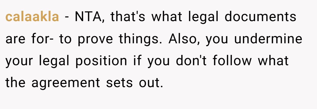 Experts like Dr. John Gottman remind us that stability is the greatest gift divorced parents can give. And while this dad upheld that for his kids, his decision to involve extended family in legal documentation might have collateral effects, possibly damaging the kids’ bonds with their grandparents or aunt.