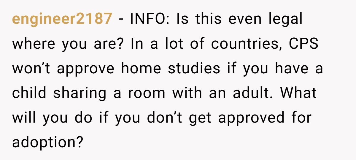 Others asked if adoption was legal in their setup and suggested exploring benefits to help with housing.