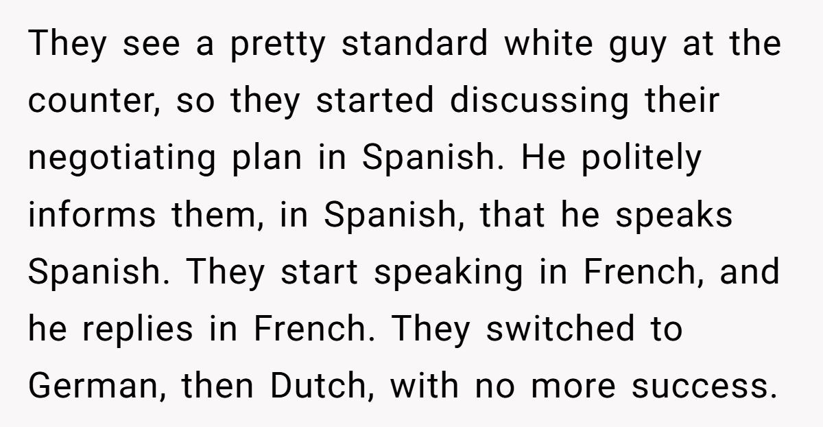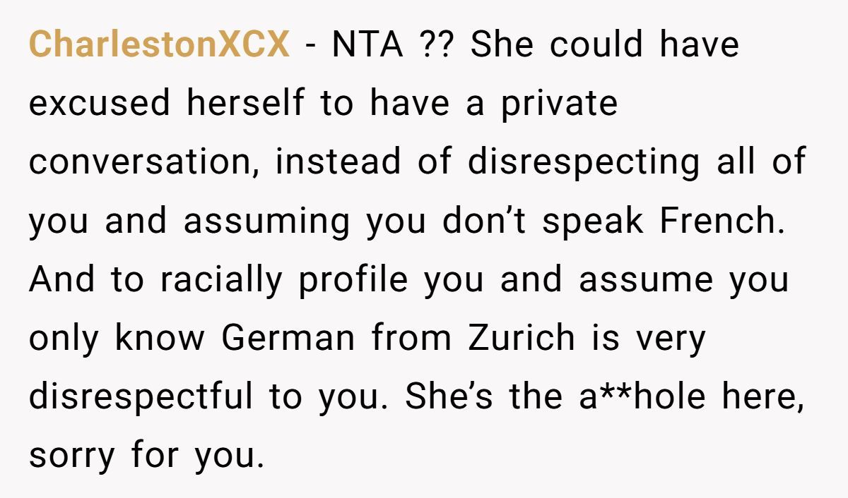 The guest assumed the Redditor only spoke Korean and possibly German due to her Swiss roots. French wasn’t on her radar — and that mistake cost her.