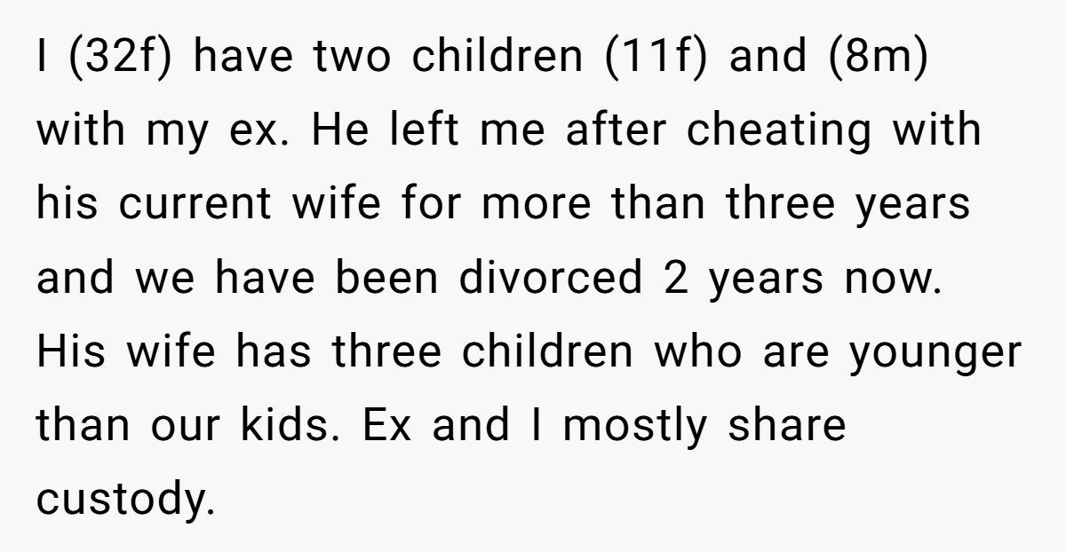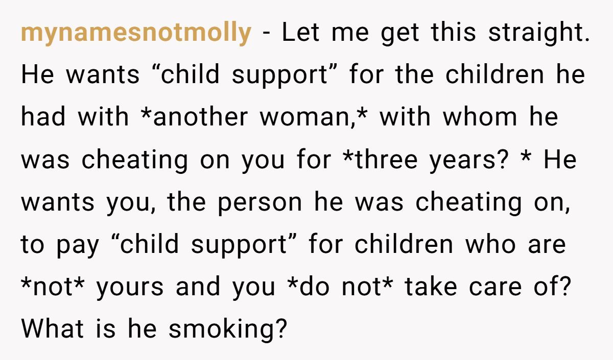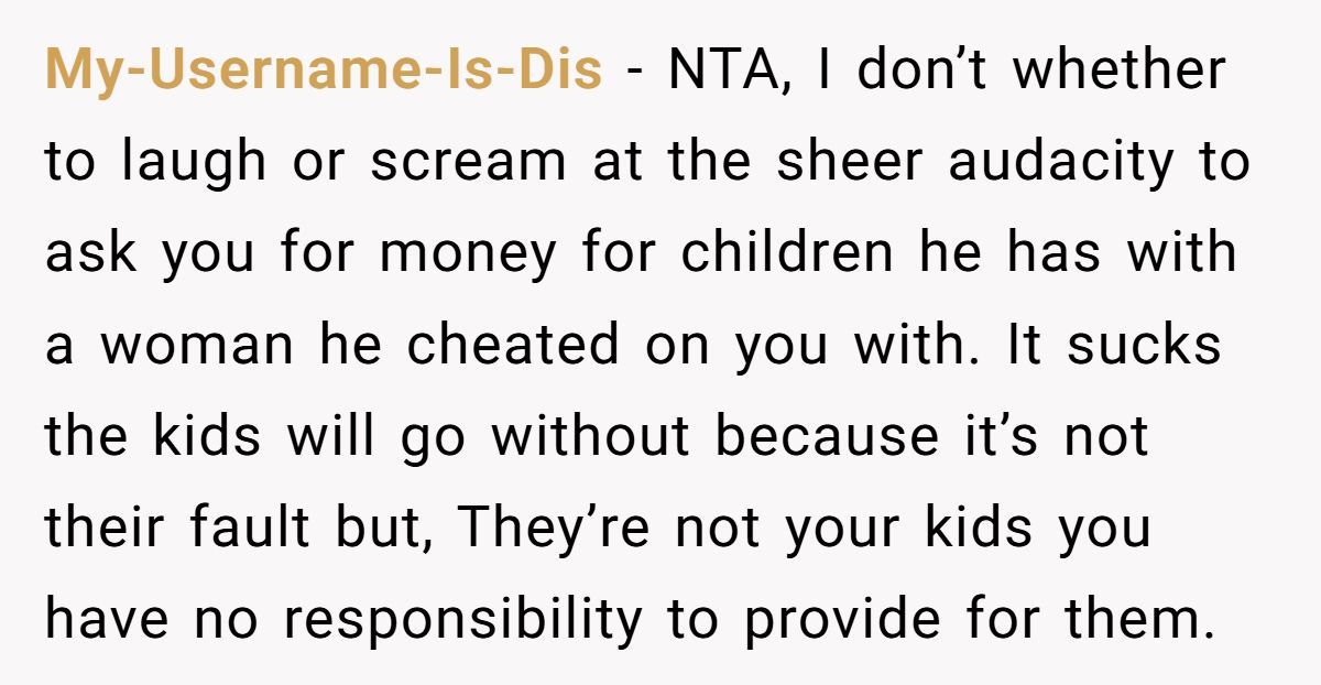 Imagine this: your ex—who cheated on you for years—calls you up, not to apologize, but to ask for money. Not for your shared kids, but to throw birthday parties for his stepkids. Yep, the children he has with the woman he left you for.