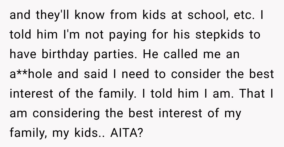 So, what do you think? Was she right to say no, or should she have chipped in “for the sake of the family”? Would you fund your ex’s stepkids’ birthday parties? Sound off with your take—we’re all ears (and maybe cake).