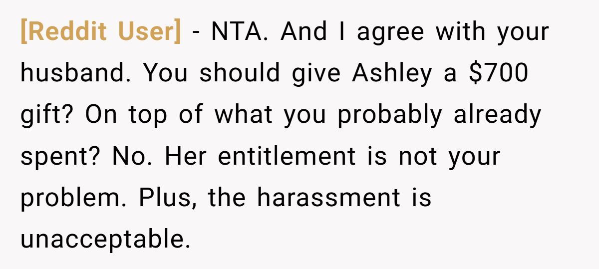 Many redditors overwhelmingly sided with the poster, calling out the entitled expectations and rallying behind the husband’s stance.