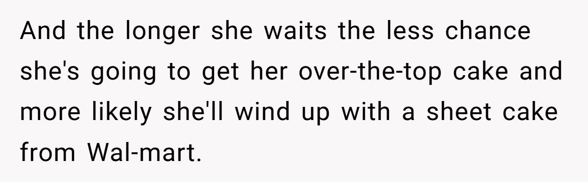 To make matters worse, Ashley enlisted the bridal party to guilt the Redditor into compliance, creating a swirl of pressure and resentment. When the Redditor firmly declined and even offered to match the previous baker’s quote of $725, the friendship began to crumble like stale fondant.