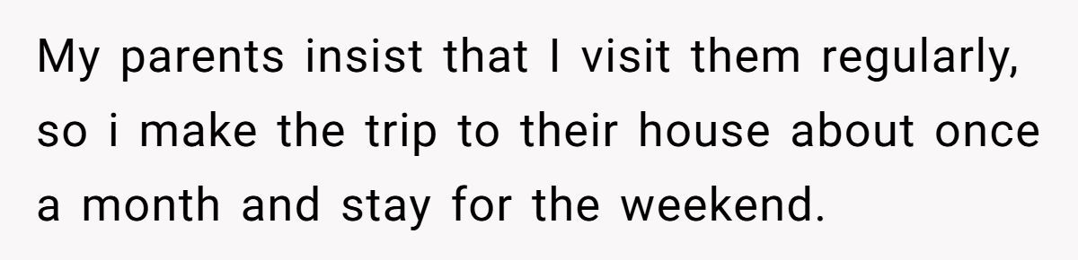 They made the monthly trip, as requested. But then their parents decided it was time to “teach responsibility” by charging rent… for weekend stays in the room they grew up in.