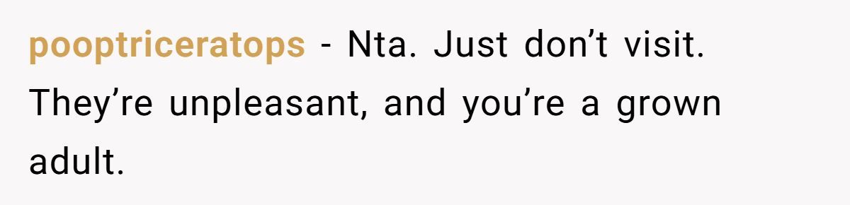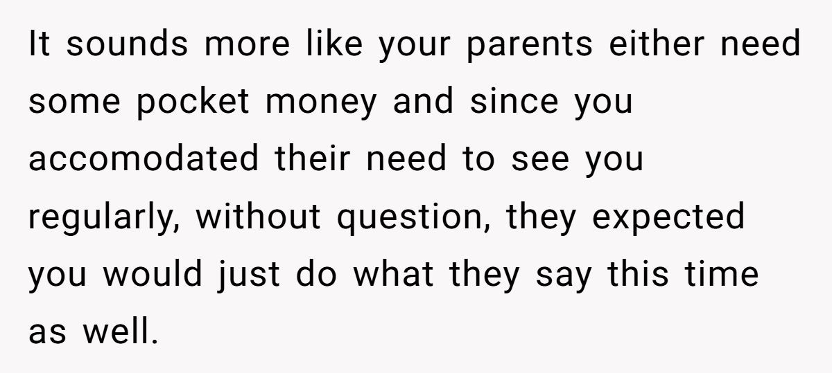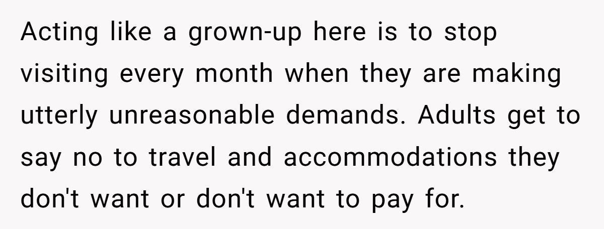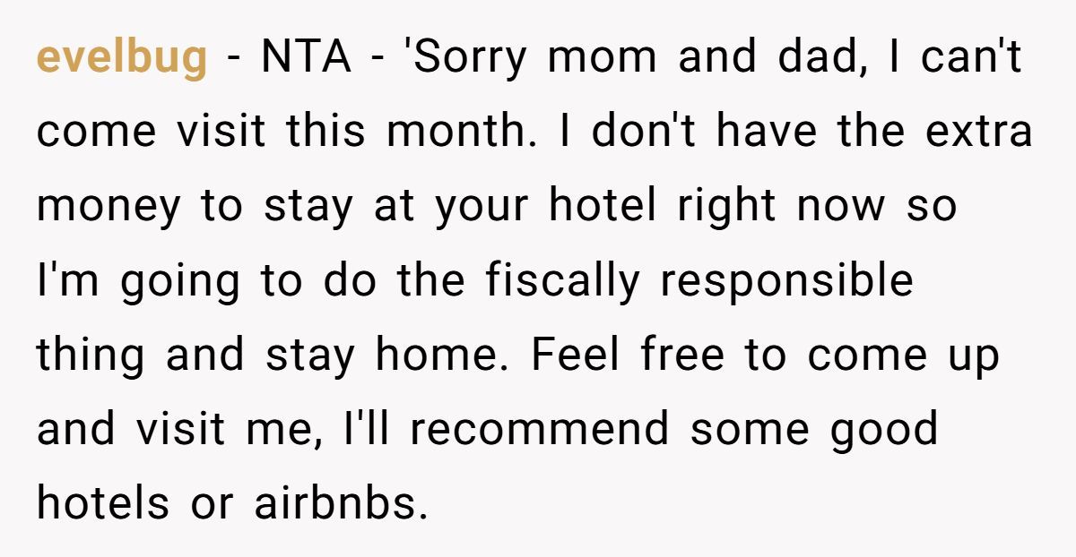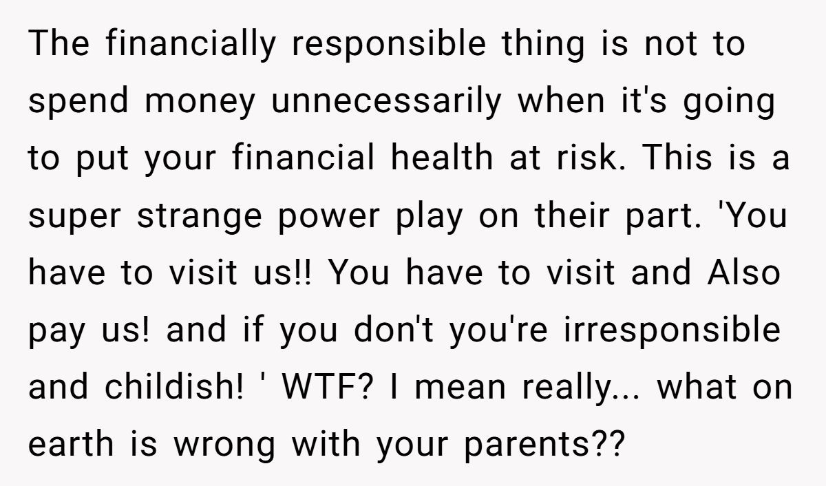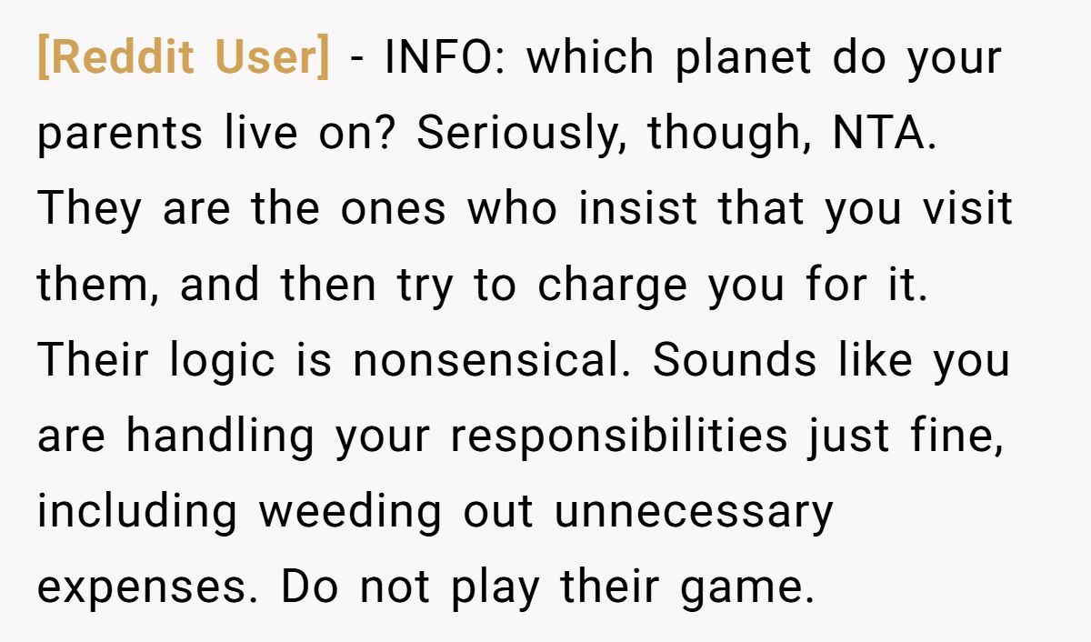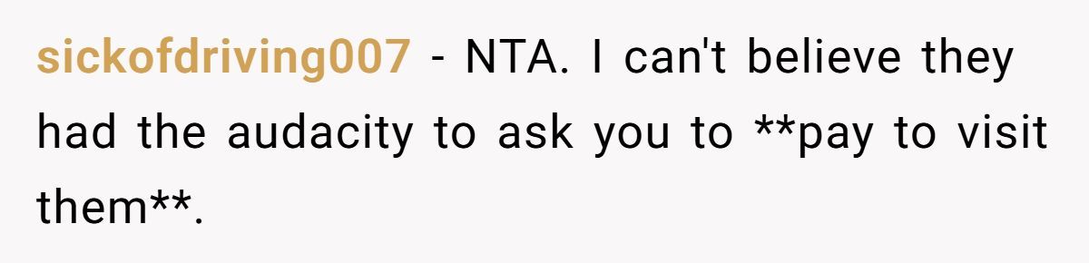 Redditors agreed they weren’t the AH—this person made the mature choice to skip the visit rather than pay for unfair demands from their parents.